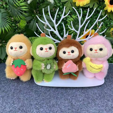 15cm Fruit Monkey Plush Chaveiro Toy Peluches Boneca Peach Morango Banana Chaveiro Claw Machine Boneca Plushie Gorilla Keychain