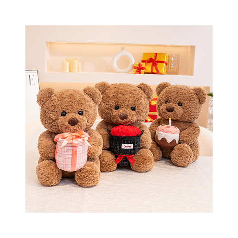 Nuovo arrivo peluche orsacchiotto di peluche con torta di compleanno animali ripieni regalo di san valentino per ragazze peluche un mazzo di fiori orso